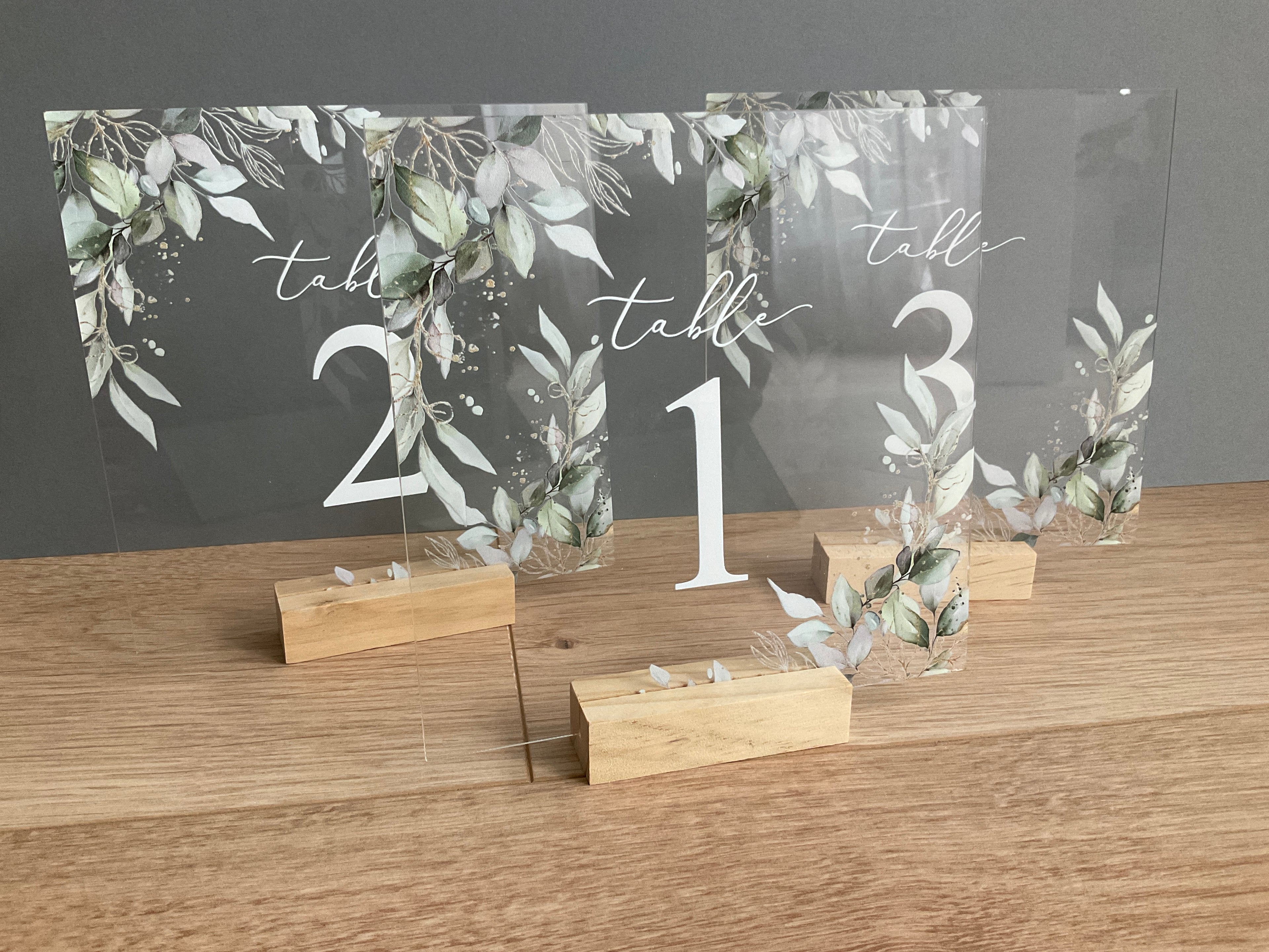 Nos marques table en plexi impression couleur apporteront une touche élégante et discrète à la décoration de vos tables
